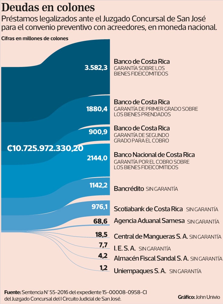 Solo tres bancos públicos otorgaron financiamiento respaldado de alguna forma, el resto de las instituciones decidió creer en la palabra de un empresario que gozaba de una posición privilegiada en el sector privado costarricense.