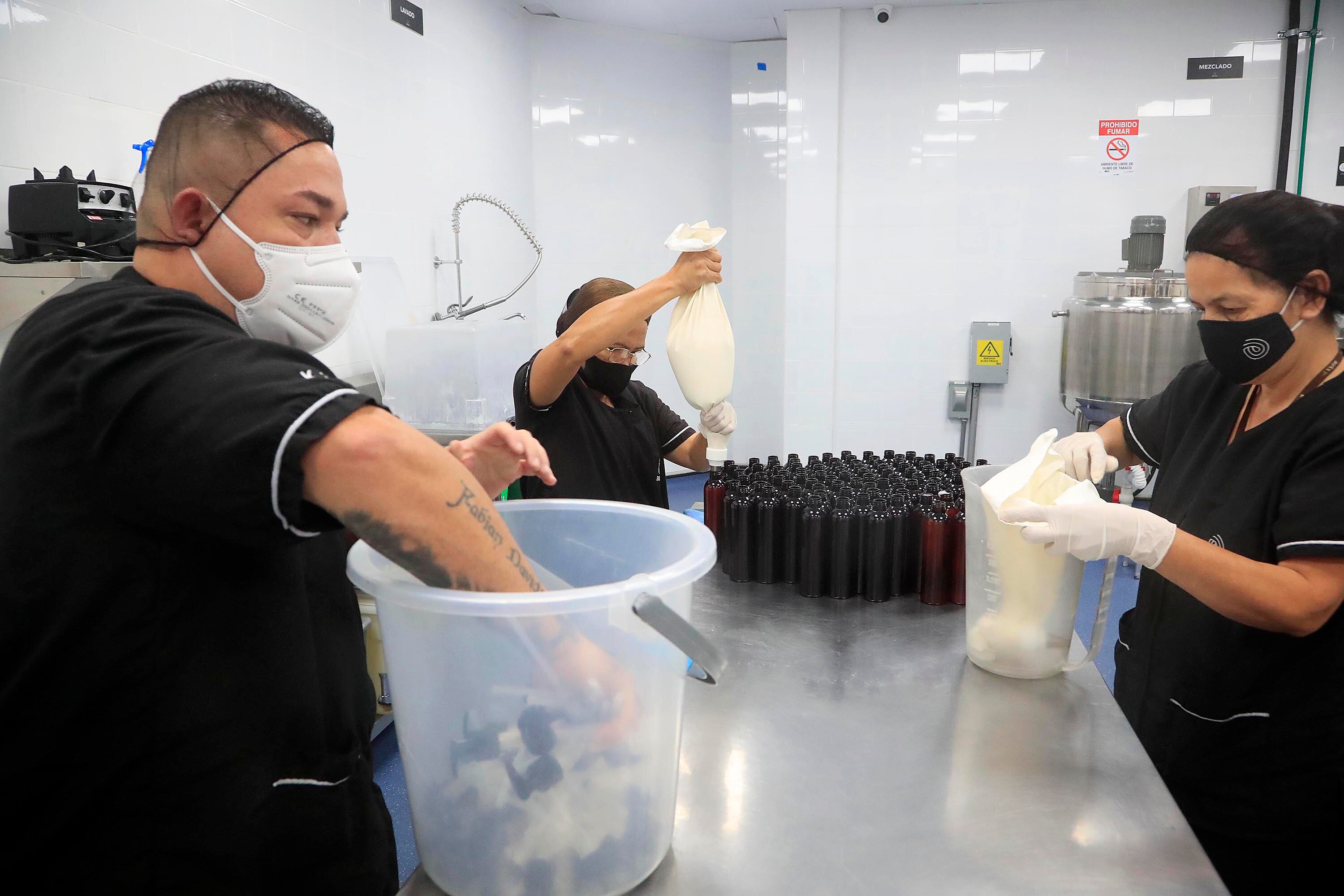 La metodología de creación se mantiene de manera artesanal: tres colaboradores se encargan de las mezclas y llenado de los recipientes, de forma manual, para que salgan al mercado.