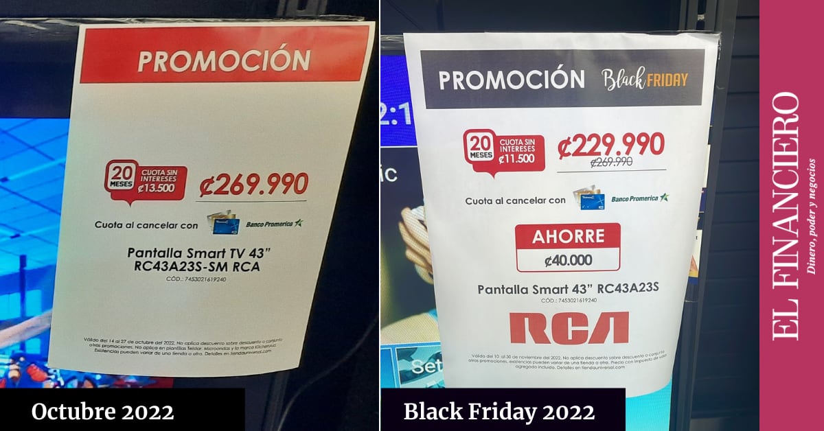 Por ejemplo, mientras un horno microondas tuvo un descuento de ¢100 colones en Black Friday, una pantalla de 43″ estuvo ¢100.000 más barata.