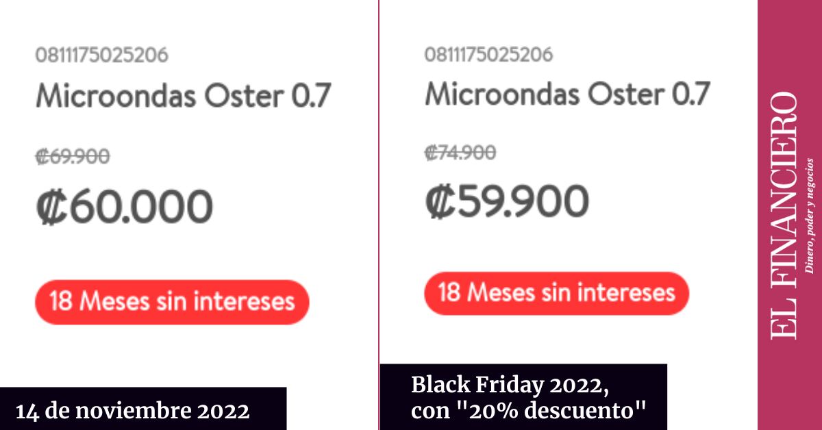 En el caso del horno microondas; el supermercado donde se comercializa anunció que tenía una rebaja de 20% al consumidor final. Sin embargo, si se compara con el último día que EF hizo la captura de datos previo al Black Friday, el descuento es menor al 1%.