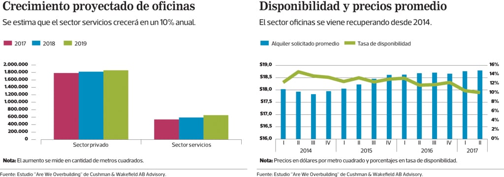 Actualmente, el sector servicios conforma más de 540.000 m² dentro de la oferta privada de oficinas, y hasta el 2019 será más de 650.000 m² .