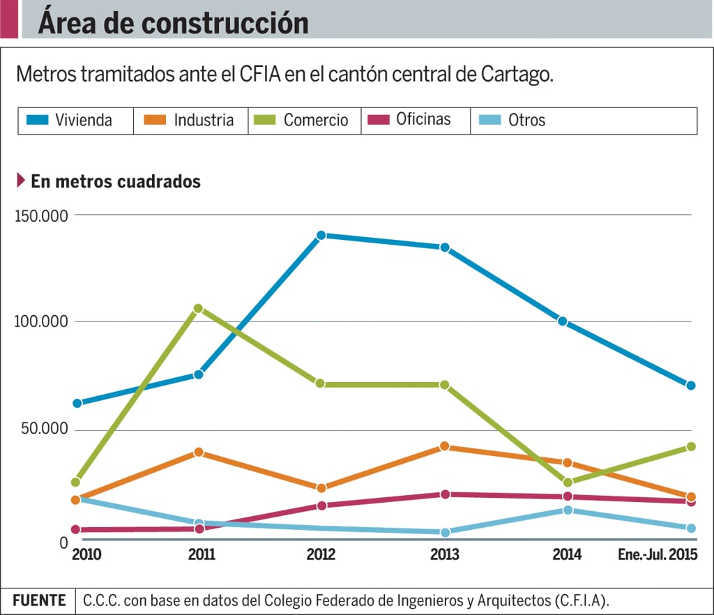 Ciertamente, la cantidad de metros cuadrados tramitados para construir ante el Colegio Federado de Ingenieros y Arquitectos (CFIA) en el área industrial muestra un repunte significativo a partir del 2012.