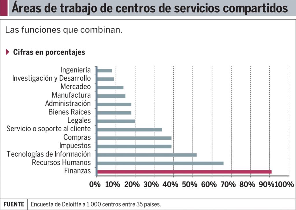 De momento, a nivel global, las áreas que más atienden los CSC son la financiera, la de recursos humanos, tecnologías de información, impuestos y compras, de acuerdo con la Encuesta Global de Servicios Compartidos de Deloitte 2015. .