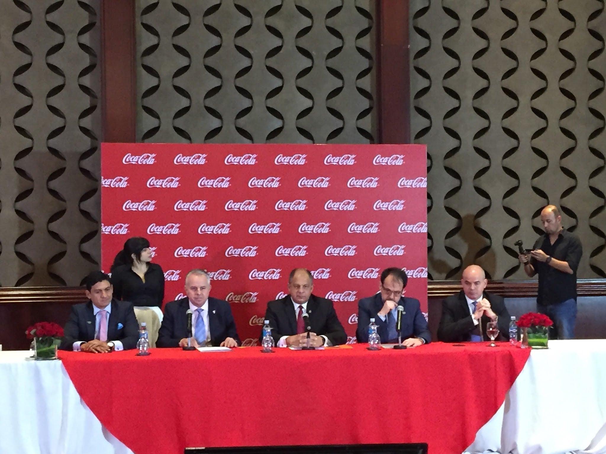 En el anuncio participaron representantes de Coca Cola junto con el ministro de Comercio Exterior, Alexander Mora y el presidente de la República, Luis Guillermo Solís.