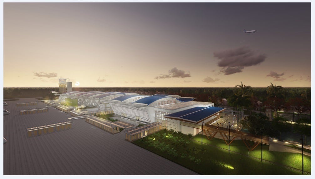 Estas abarcan, entre otras, la nueva terminal de pasajeros localizada al oriente del actual edificio con un área de 10,887 metros cuadrados, andenes perimetrales, una nueva torre de control, que contará con nueve pisos de altura, vías de acceso y parqueos.