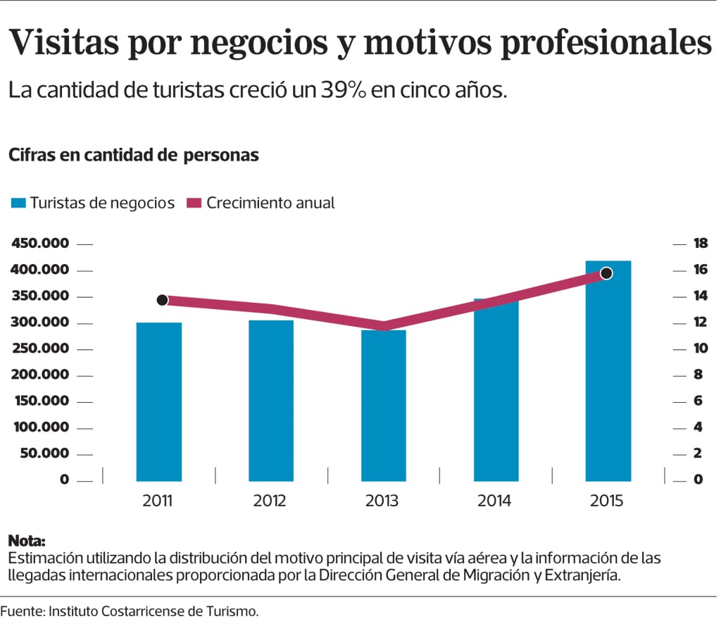Según cifras del Instituto Costarricense de Turismo (ICT), más de 1,9 millones de personas ingresaron a Costa Rica en el 2015 para hacer actividades de ocio y 419.077 vinieron por negocios.