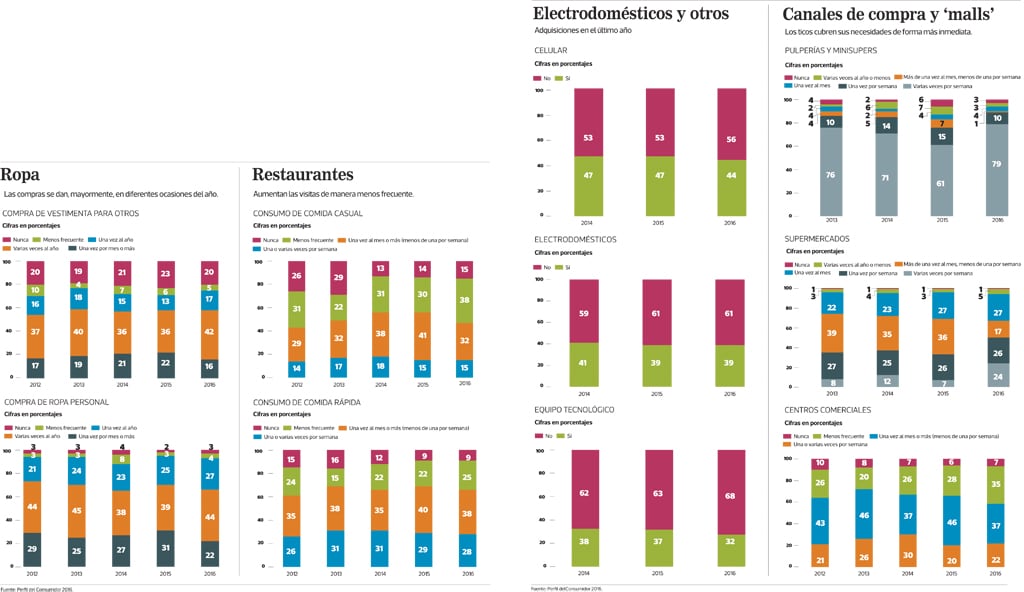 Esto se evidencia al ver un crecimiento de 17 puntos porcentuales en la proporción de personas que van al supermercado varias veces por semana, pasando de 7% a 24% del 2015 al 2016.