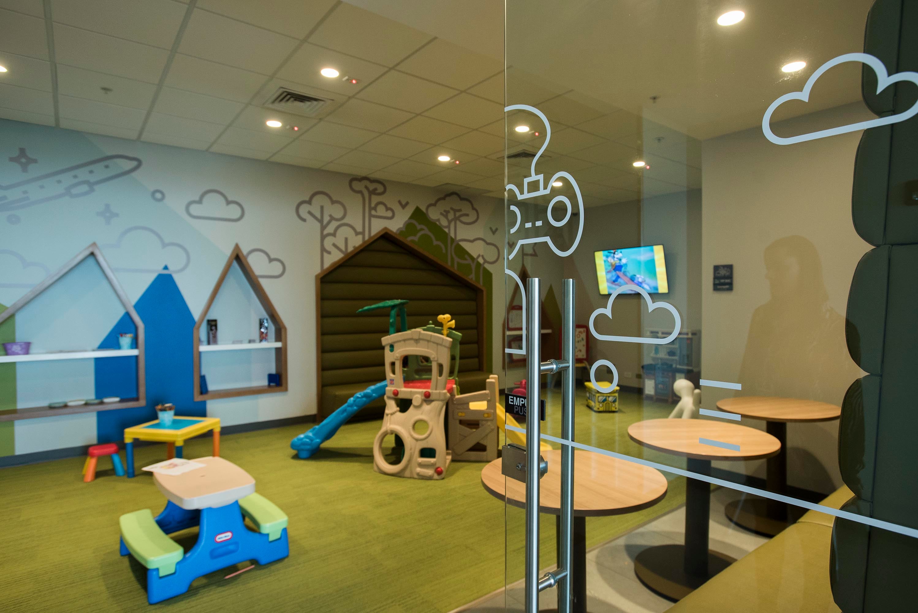 Esta sala está ubicada en el segundo nivel del aeropuerto, justo sobre la puerta de abordaje 19. Funciona con un horario de atención de 4:30 a.m. a 8:00 p.m. Esta es la oferta de la sala: