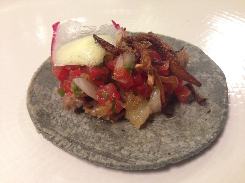 Salbute, escamoles, hongos y cuitlacoche. Jorge Vallejo (Quintonil).