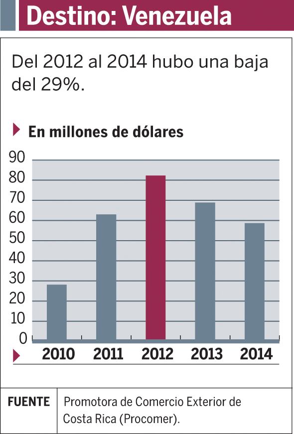 Por su parte, Fiorella Bulgarelli, directora ejecutiva de la Cámara de Exportadores de Costa Rica (Cadexco), explicó que las importaciones en Venezuela han disminuido en general y que no se debe a un comportamiento únicamente de Costa Rica.