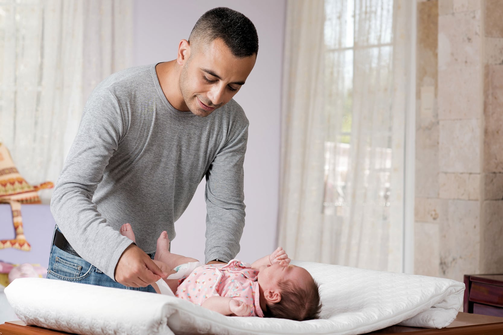 Su situación es extraordinaria: el empleador le brindó un permiso igual al que le habría correspondido a su esposa, con 18 semanas pagadas, es decir, cuatro meses y medio para adaptarse al cambio de vida que implican la maternidad y la paternidad.