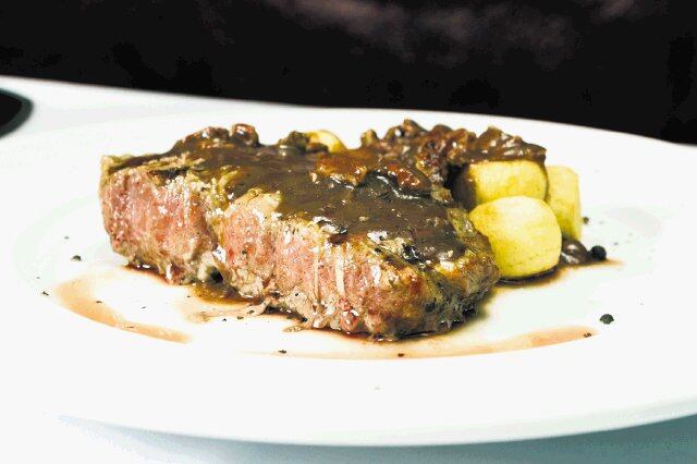 Lomo Filo . Grillado con salsa demiglasse , vino tinto y nueces, con esferas de papa. Excelente sabor, tanto de la carne –tierna– como de la salsa y los acompañamientos.