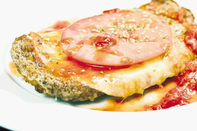 Petite milanga napolitana . Suave carne de ternera con delicada fusión de jamón y queso; y salsa de tomate concasse . Nada pequeña: una milanesa de buen tamaño y muy bien lograda.
