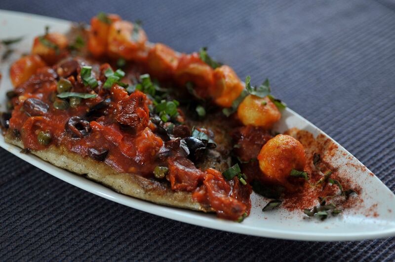 Tapeo clásico. Patatas bravas con alioli (mayonesa casera con ajo), en salsa picante; provolone fundido, con aceite de oliva, orégano y pimienta; bruschettas de prosciutto caprese , en tostadas de pan de la casa, con mozarella fresca, tomatitos secos y albahaca. Porciones generosas. Cada uno de sus componentes mereció un “excelente”, siendo la reina la cazuelita de provolone .