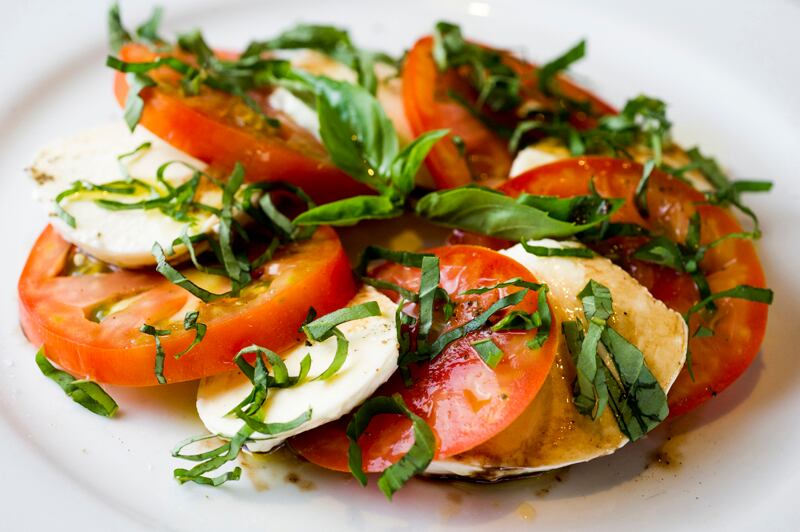 Ensalada caprese clásica. Rodajas de tomate con tajadas de mozarella fresca y albahaca. Justo lo que describía el menú. Ni más, ni menos.