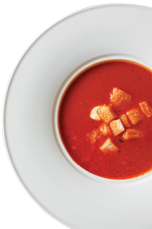 Sopa de tomate ahumado . Porción abundante, espesor adecuado, gusto excelente. Con crutones y una pizca de crema al centro.