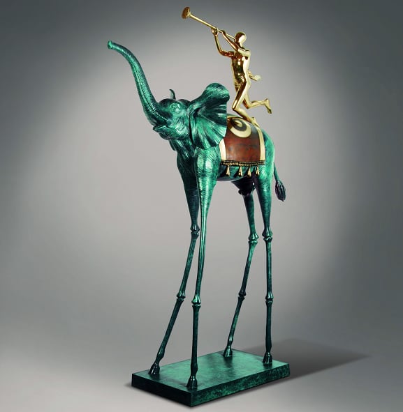 Los elefantes fueron utilizados por Dalí (1903-1989) como símbolo del futuro y este animal, que el artista catalán representa en esta pieza con largas y finas piernas, se repite en muchas de sus obras artísticas y se conoce como “elefante daliniano”.