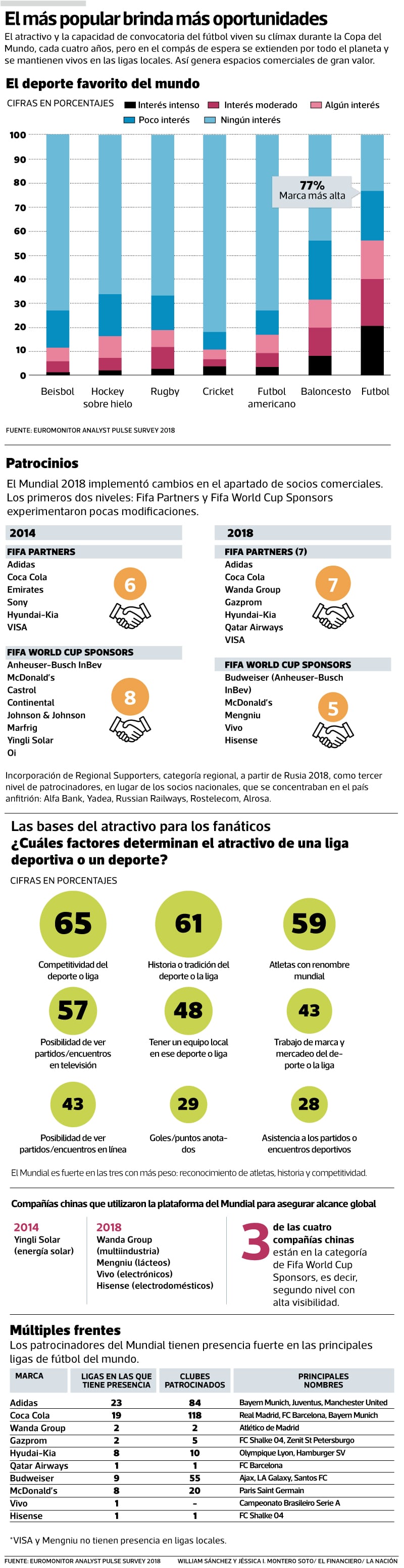 Al tener datos sobre el alcance de la cita mundial de fútbol, se comprende qué motiva la inversión de millones de dólares en patrocinios, que trascienden el Mundial y llegan a las competencias regionales y a las principales ligas del mundo.