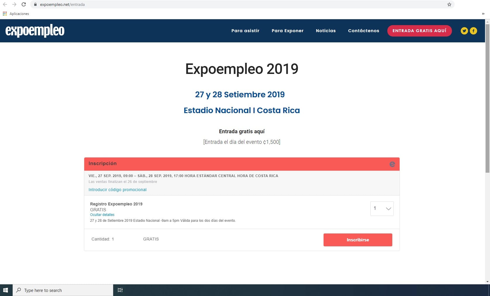 Las personas que decidan llegar sin inscripción previa, deberán cancelar su entrada en el evento por ₡1.500.