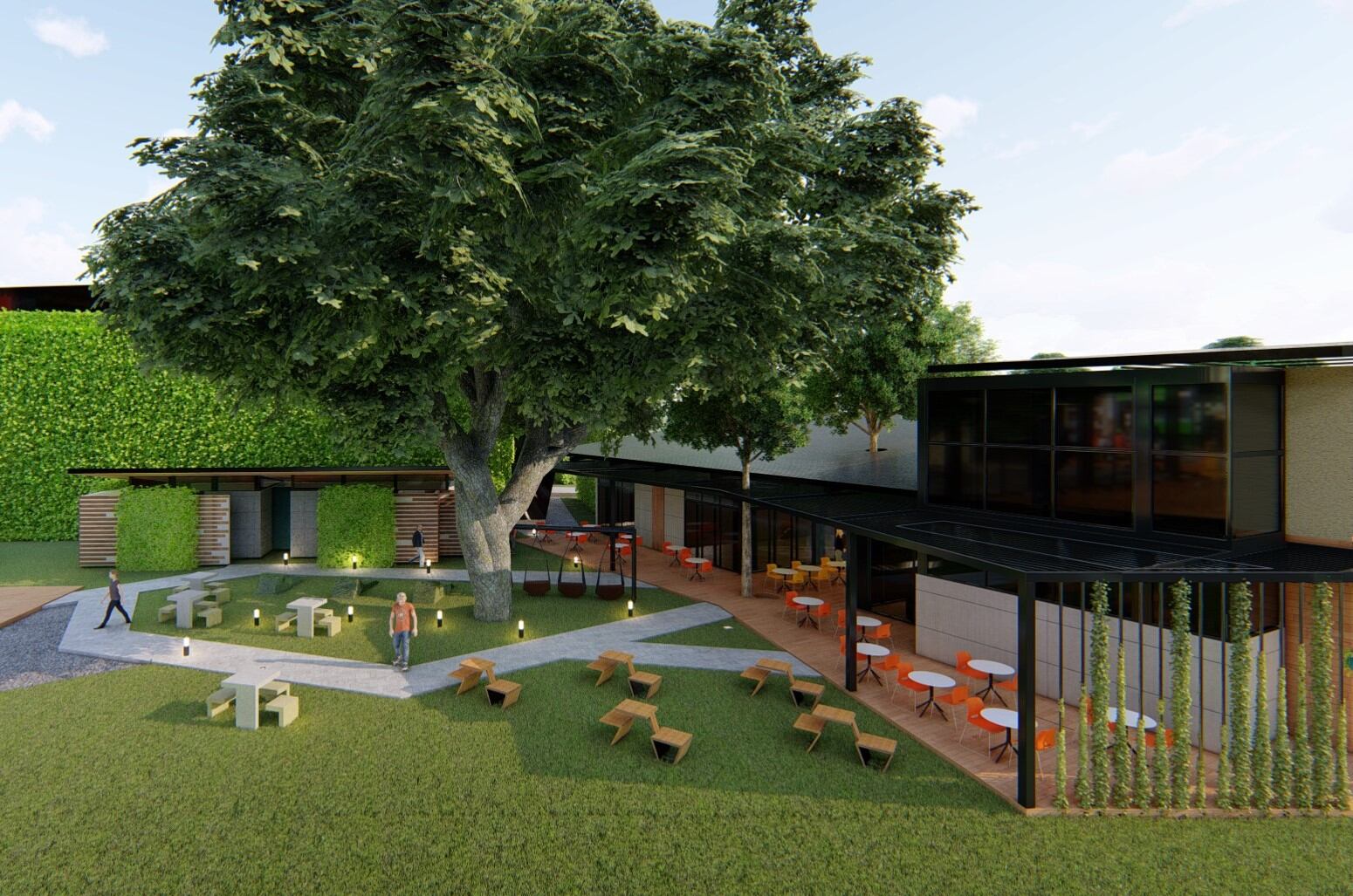 La plaza comercial comprenderá más de 700 metros cuadrados y tendrá cuatro locales, así como baños, duchas, jardín y terraza en la que se ofrecerán opciones para comer y actividades recreativas.