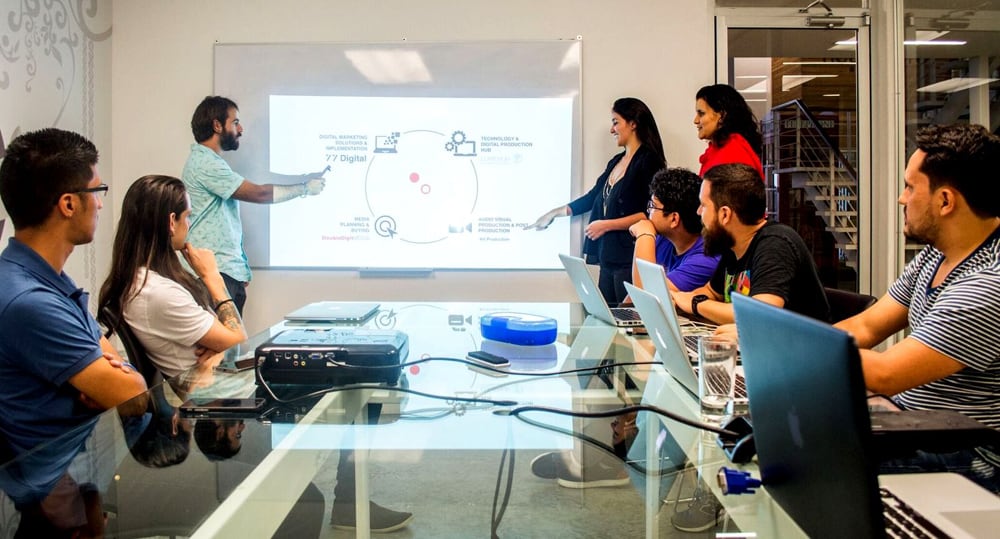 La unificación pretende que se complementen aspectos como la especialización en mercadeo, estrategias creativas digitales, contenidos, gestión de canales y redes con el brazo tecnológico, de innovación, gestión, diseño y desarrollo de soluciones digitales de negocio, explicaron Henry Nane, jefe de operaciones de 77 Digital, y José María Calvo, gerente de Lumenup.