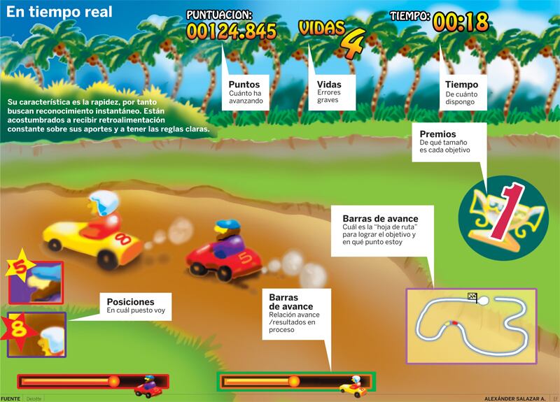 -Los juegos están programados para avanzar al siguiente nivel según el resultado individual inmediato y no el tiempo que lleve jugando. La experiencia suma para otro tipo de retribuciones o brinda posibilidades adicionales.