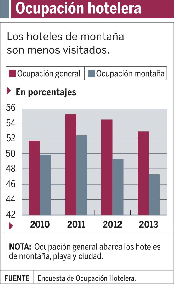 Algunas de estas medidas podrían estar dando resultados debido a que, según la encuesta de la CCH, hasta julio pasado, se reportaba un promedio de 54,64% de ocupación en los hoteles de montaña, superior a la del 2013.