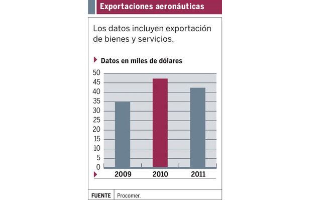 Los datos de Procomer indican que, en el 2011, las exportaciones de productos y servicios aeronáuticos alcanzaron $42 millones. .