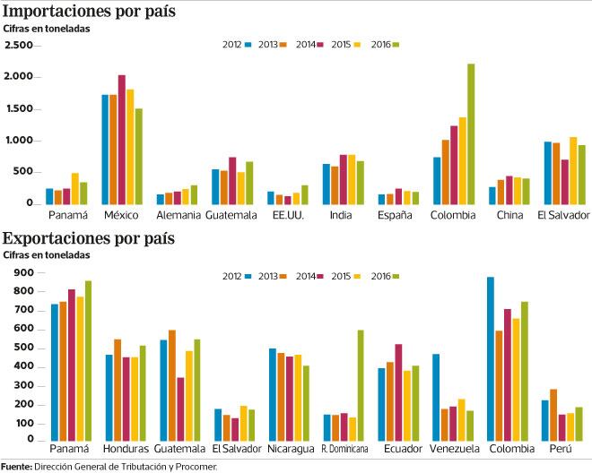 Según datos de la Promotora de Comercio Exterior de Costa Rica (Procomer), los cinco principales destinos son Panamá, Colombia, Guatemala, Honduras y, finalmente, Nicaragua.