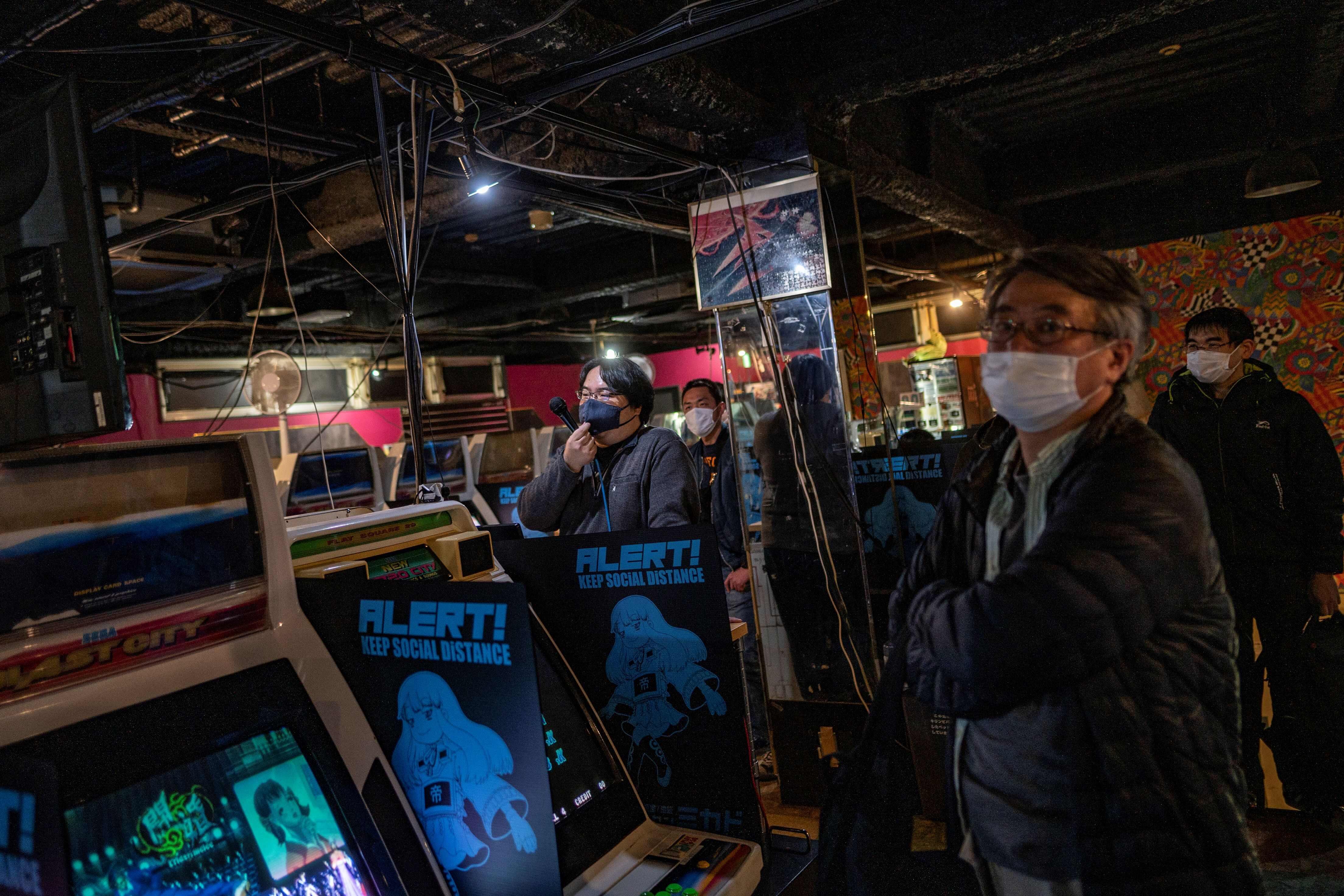 No son ni las 8 p.m. pero el salón de videojuegos de arcade Mikado, en un barrio de estudiantes de Tokio, invita a sus pocos clientes a ir dejando las maquinitas, a causa de las restricciones impuestas frente a la COVID-19.