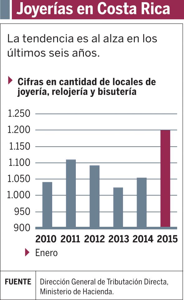 Precisamente, los locales de de joyerías de todo tipo, relojerías y bisutería, en general, presentaron una tendencia al alza en los últimos seis años, de acuerdo con el registro de la Dirección General de Tributación del Ministerio de Hacienda.