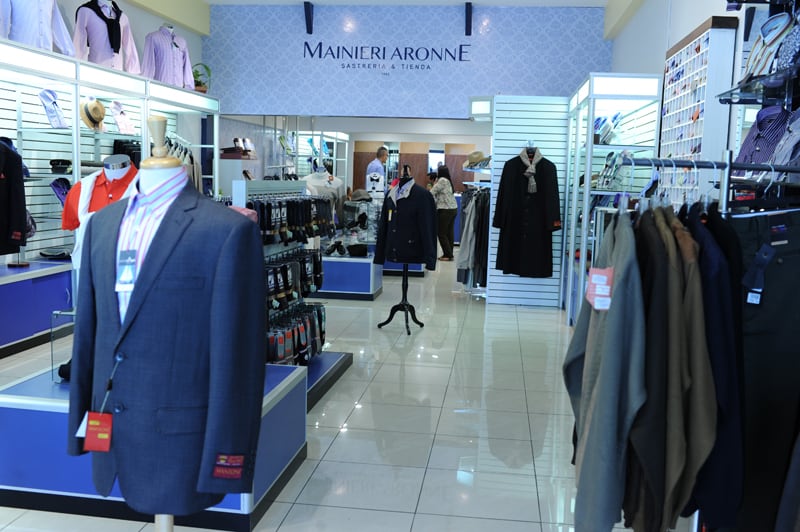 La sastrería elaborada 100% por el personal de Mainieri Aronne usa telas importadas de España, Italia e Inglaterra. Las otras prendas que se importan vienen de diferentes países.