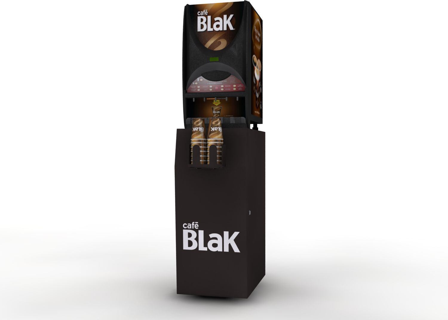 La primera empresa utiliza la marca Café Blak para comercializar máquinas que dispensan un aproximado de 250 tazas entre café americano, cappuccino, vainilla, moka y chocolate.