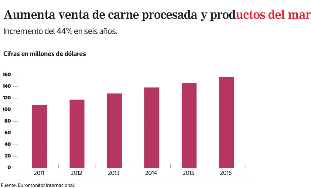 Y es que el consumo de productos de mar (refrigerados, congelados y de larga duración) creció un 16% en los últimos seis años: pasó de 11,7 a 13,6 toneladas, según Euromonitor Internacional.