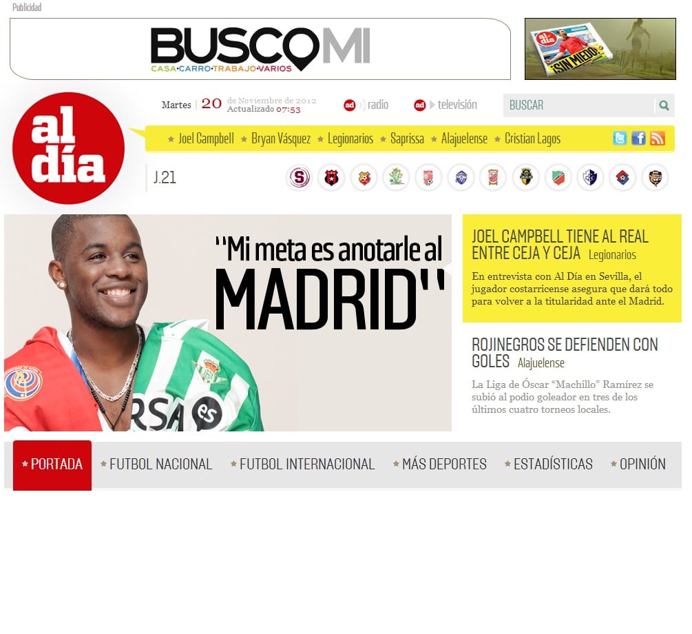 A partir de hoy martes, el periódico Al Día, de Grupo Nación (GN), circula con nuevos conceptos de imagen y contenido enfocados únicamente en deportes, a través de sus plataformas impresa, móvil, radio y web.