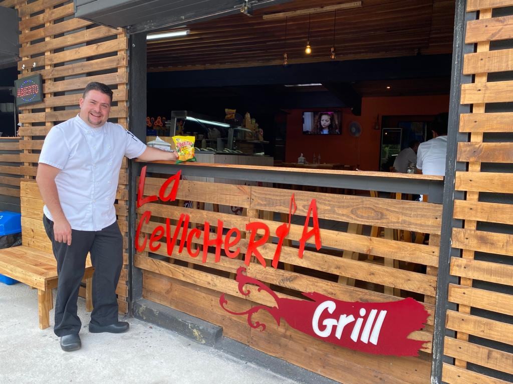 César Bolaños, propietario de La Cevichería Grill ubicada en Cartago, comenzó en marzo de 2018 su negocio de caldosas por una ventanilla.