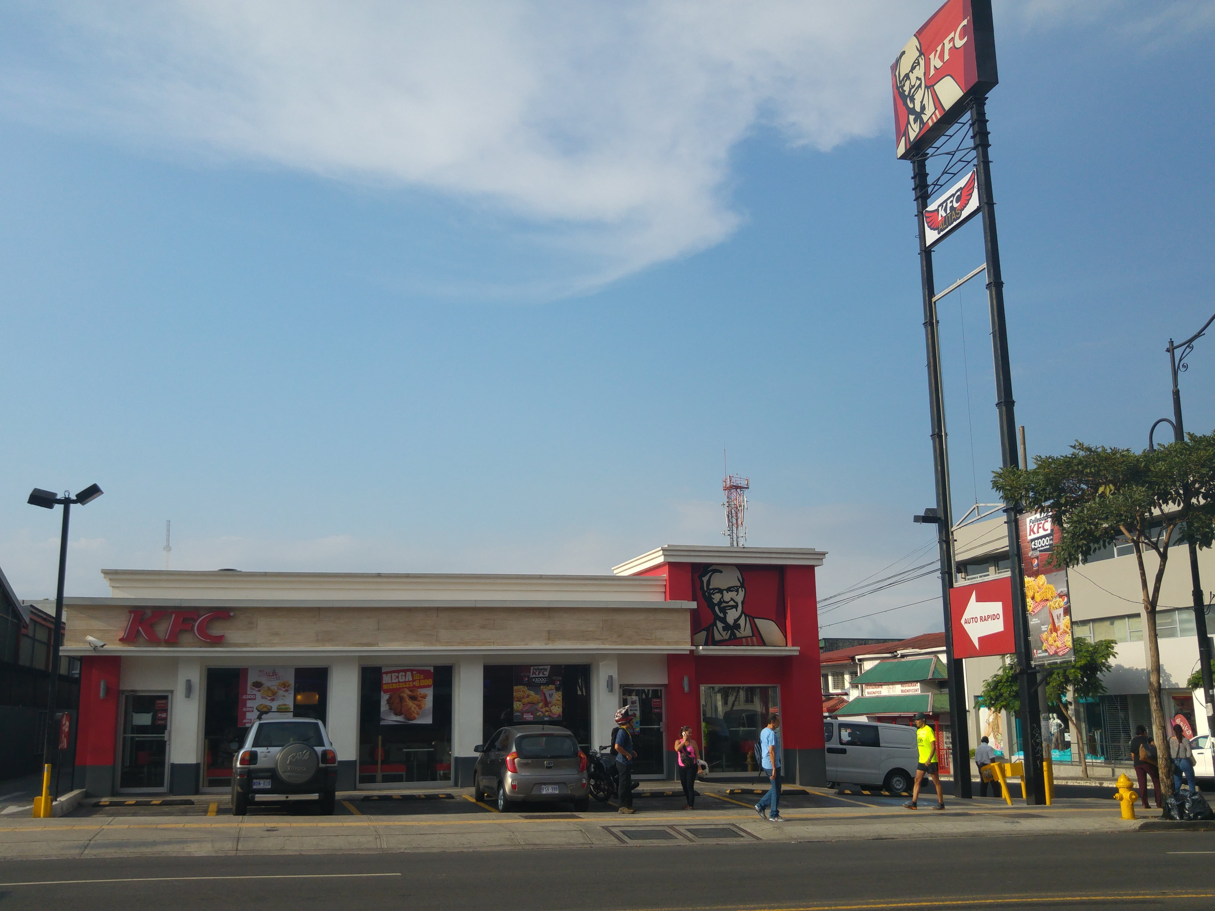 El primer restaurante de comida rápida extranjera en el país fue el KFC de Paseo Colón, en San José. Abrió en febrero de 1970.