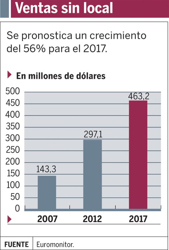 Datos de la consultora Euromonitor indican que las ventas que se hacen sin tener un local (directas, desde la casa o por Internet) alcanzaron $297,1 millones en el 2012 y se estima que crecerán un 56% para el 2017.