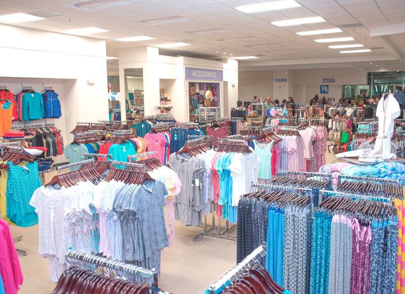 En ambos locales, la empresa desarrolló sus 12 departamentos: damas, íntima, carteras y accesorios, caballeros, niños, niñas, bebés, uniformes, deportivo, juguetes, hogar y electrodomésticos.