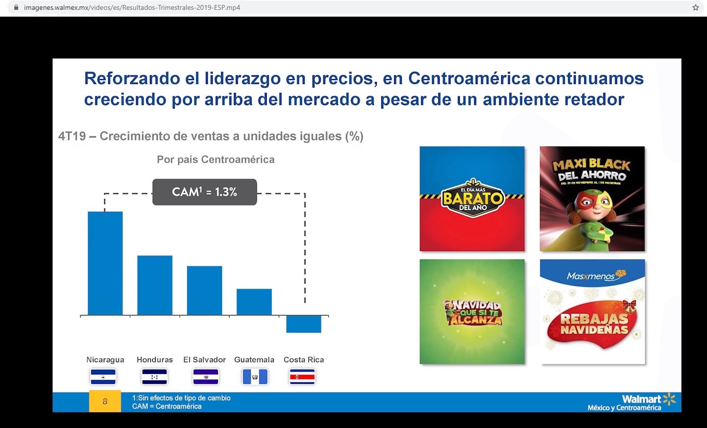 Loureiro mencionó que, a diferencia de Walmart Costa Rica, Nicaragua tuvo el mayor crecimiento en ventas a unidades iguales, seguido por Honduras, El Salvador y Guatemala.