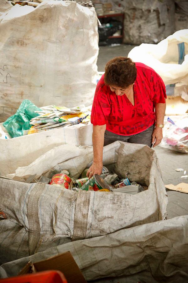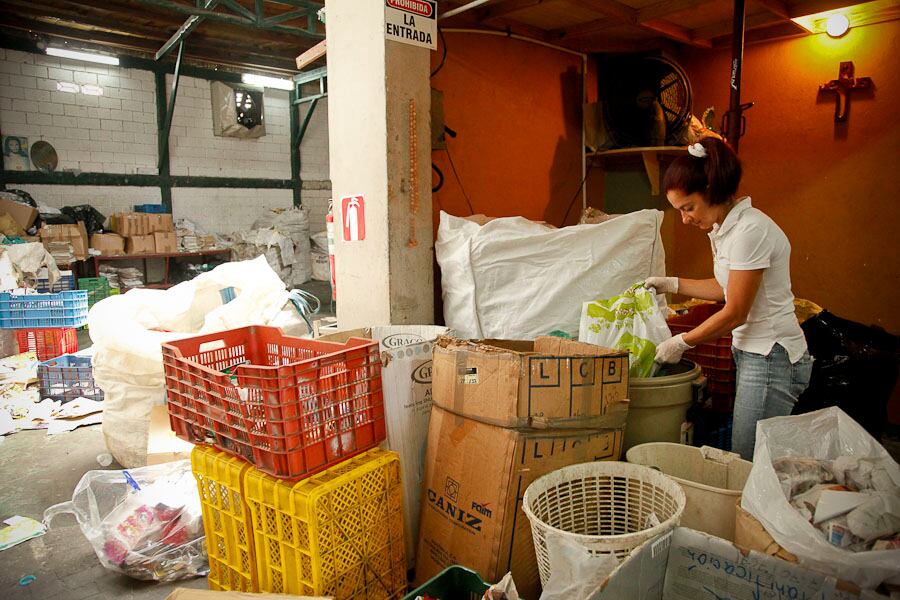 Sus camiones entran y salen con toneladas de papel, aluminio, cartón, plástico y vidrio, que recogen en cualquier lugar de donde los llamen -como afirma Campos-. Es imposible hablar con la dueña en su oficina sin escuchar el ruido de los montacargas que trabajan al lado, así como de sus hijos y empleados separando la basura de los residuos reciclables y clasificándolos para la venta.