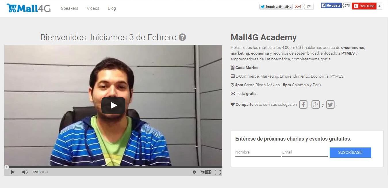 Detalle de las capacitaciones: Sitio web: http://academy.mall4g.com/ Hora: 4:00 p. m. Día: todos los martes. Costo: Es gratuito. |