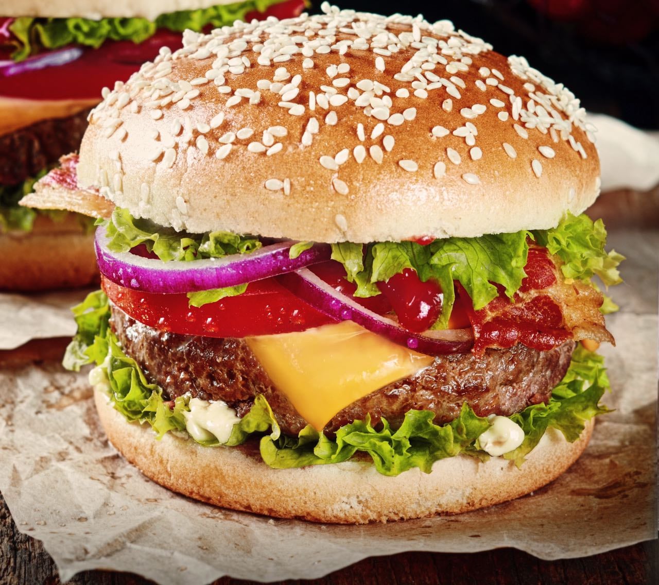 Las hamburguesas no pueden faltar y cuentan con opciones de pollo y de carne de res.