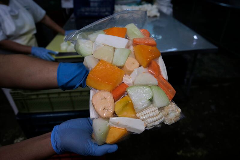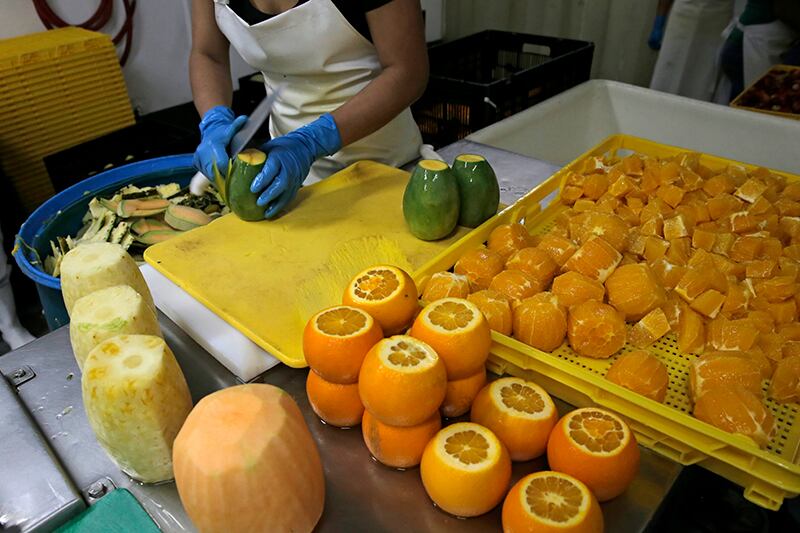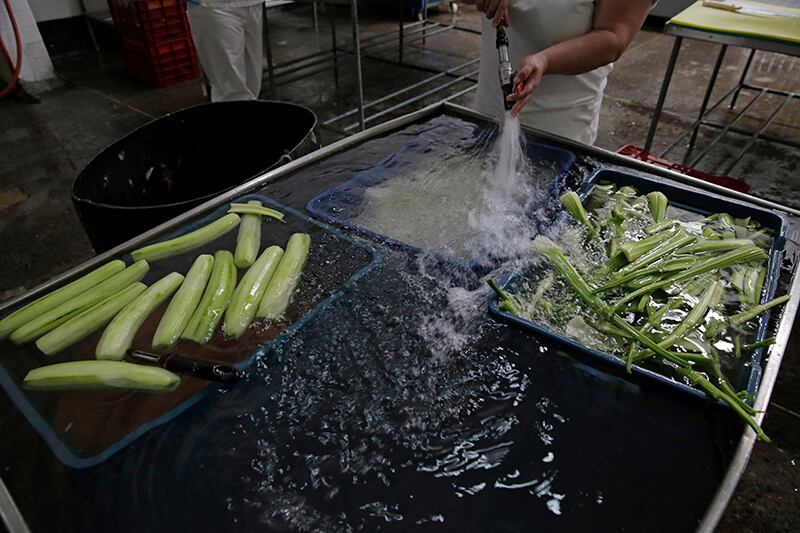Los alimentos pasan por un estricto proceso de pelado, lavado y secado, que es monitoreado por supervisores, para garantizar que sea de la mejor calidad posible (ver video).
