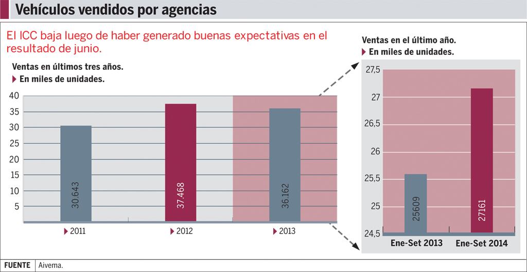 Empero, ahora el escenario es más airoso para este mercado , ya que de enero a setiembre del 2014, las ventas de automóviles nuevo s y usados en las agencias aumentaron un 6%, según datos de la Asociación de Importadores de Vehículos y Maquinaria (Aivema).
