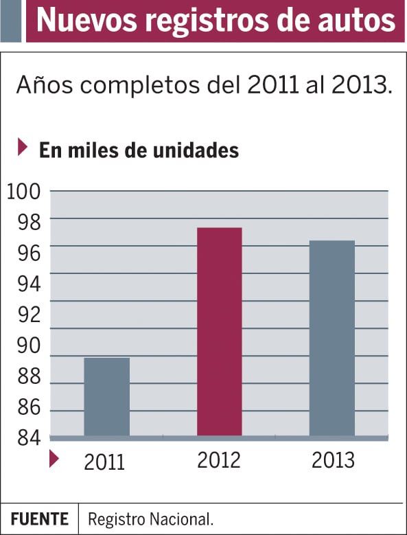 Al cierre del 2013, se registraron 98.410 nuevos autos, 953 menos que en el 2012, mientras que en ese año se presentó un incremento del 10,53% en las inscripciones. .
