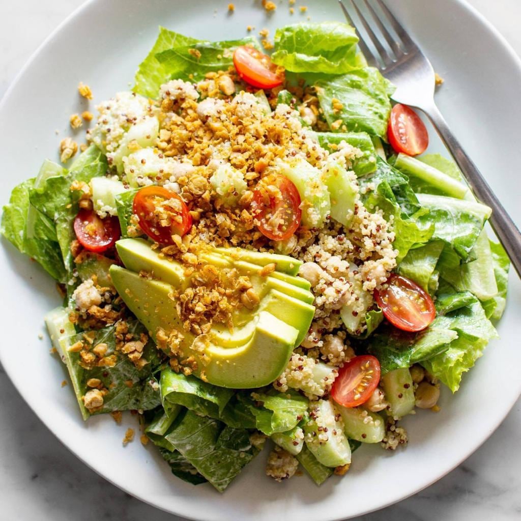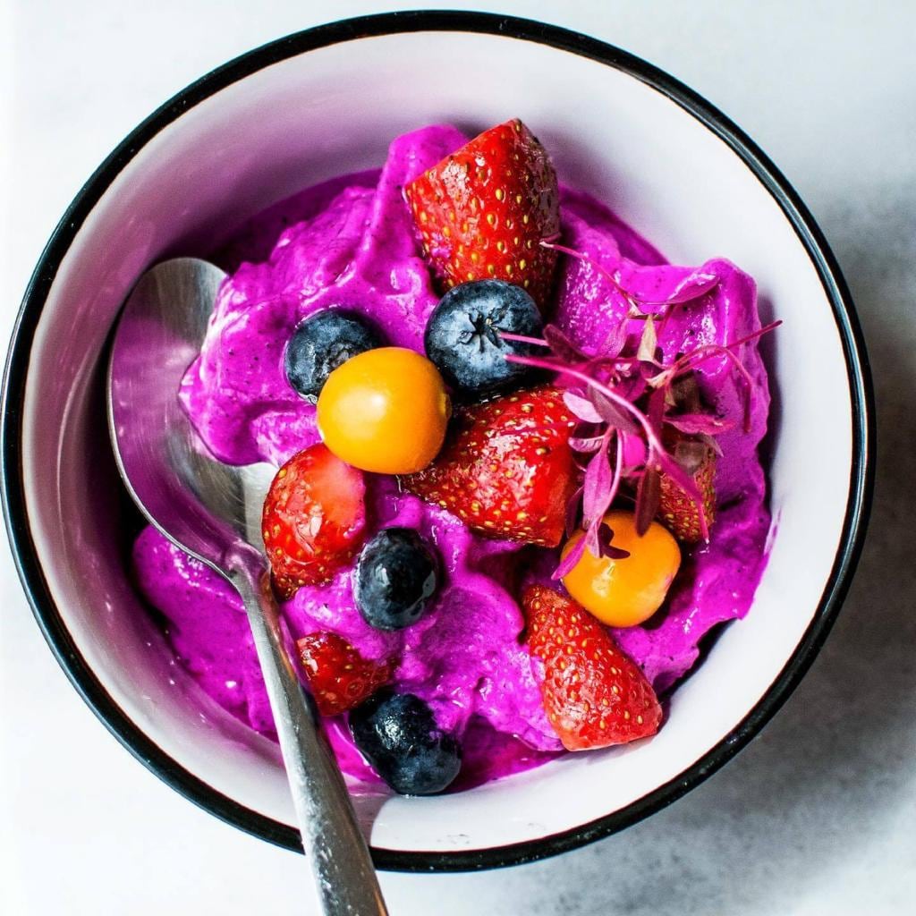El menú incluye pancakes, tostadas, yogurt, avena, pudin de chía, batidos, ensalada, risotto de coliflor, pasta y gallos de jackfruit (yaca, una fruta local).