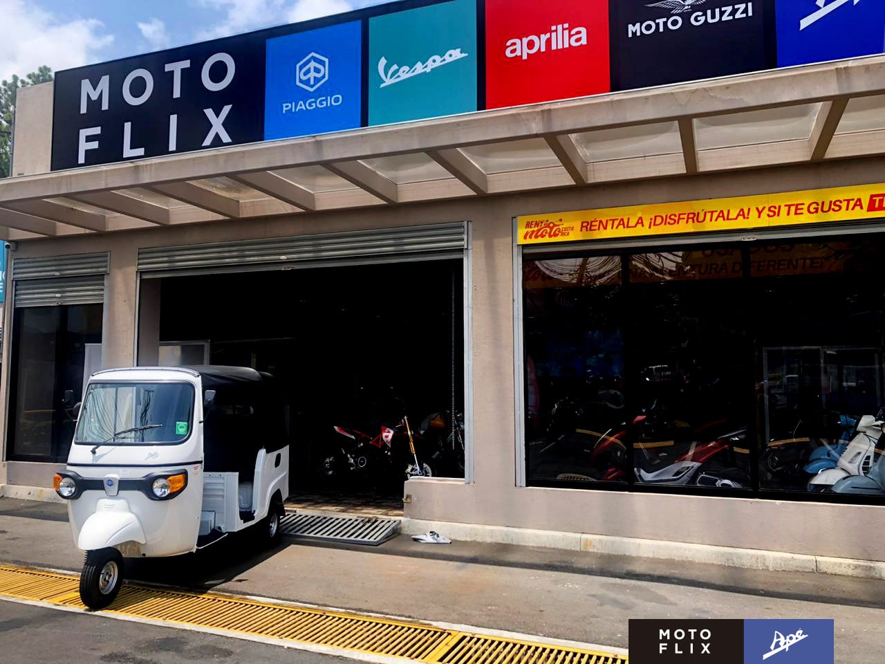 Los Ape son motocarros muy útiles para personas emprendedoras. Así que hace dos años, Motoflix —ahora ubicado frente al Pricesmart de Heredia— alquilaba Vespas y vendía motocarros Ape, así como las otras marcas de Piaggio: Aprilia y Moto Guzzi. Fue cuando le avisaron desde Italia que si quería ser el concesionario de Vespa. Estaba feliz. Solo que a una de arena, otra de cal.