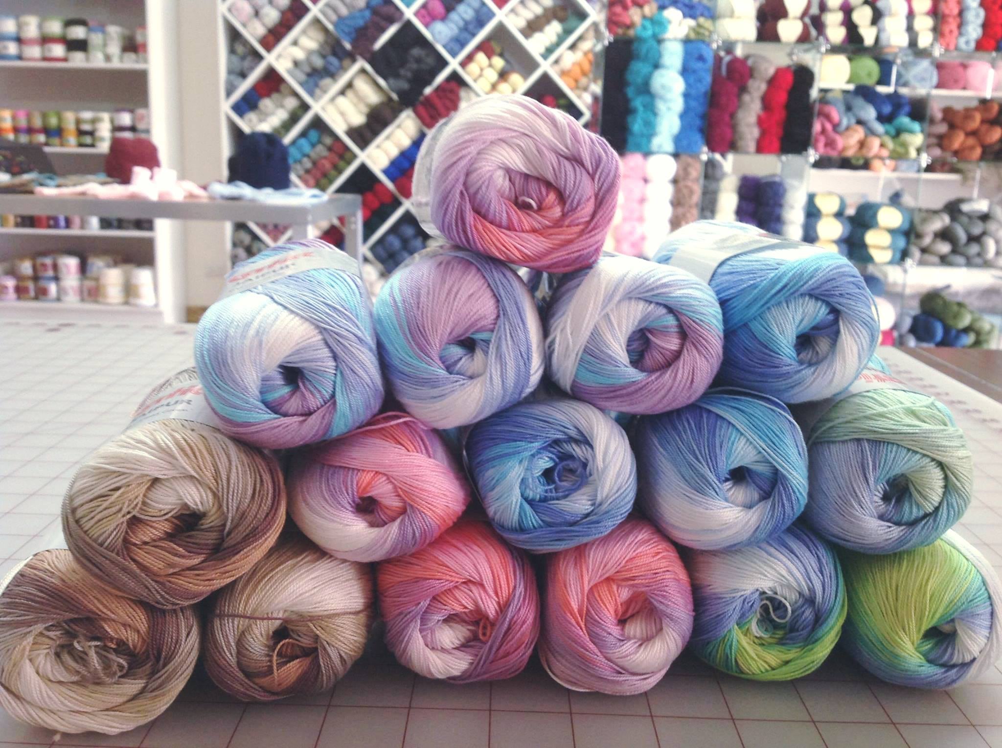 En la tienda se pueden encontrar los materiales necesarios para trabajar en diferentes grosores y colores, como lana pura, seda, algodón, fibras acrílicas con algodón, rayón y agujas, entre otros.