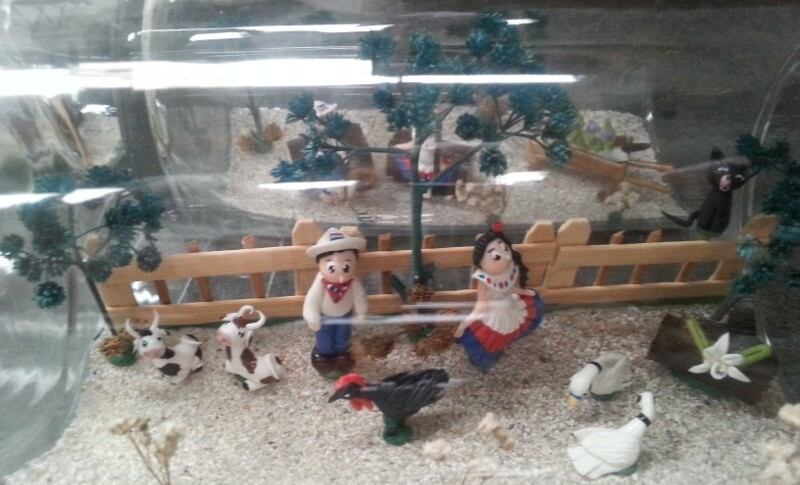 Con sus dos talentos puestos en marcha, crean pequeños escenarios que en algunos casos se colocan dentro de botellas: campesinos en casitas con muebles; pasitos; músicos con sus instrumentos (como un piano o una guitarra); bares con personas adentro.